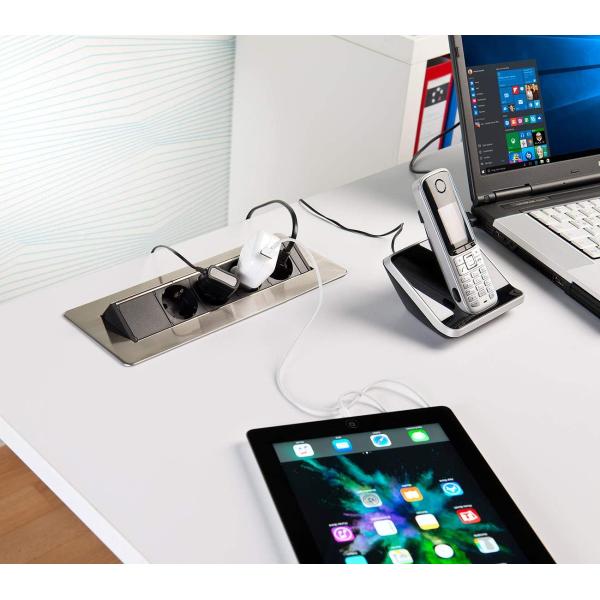 1. The ideal power strip for office, kitchen and home office: embedded in a desk, countertop or workbench, the bar takes no space. A light finger pressure is enough: The 4-way power strip is already running out. It's just as easy to drive it in again.