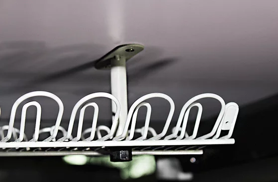 Collects your electric and computer cables together; makes it easier to keep your work area tidy.